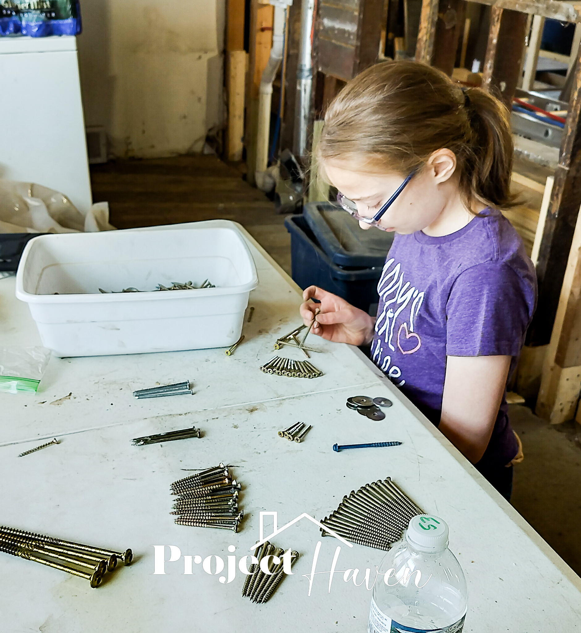 Kids helped vacuum, sort trash, sort tools and hardware, sweep, mow, vacuum…the shop-vac ran almost all day.