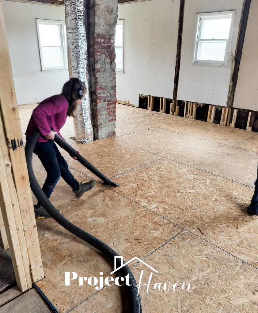 We finished cleaning out the exposed cavities and then vacuumed (yes, again). Ready to start on electrical!