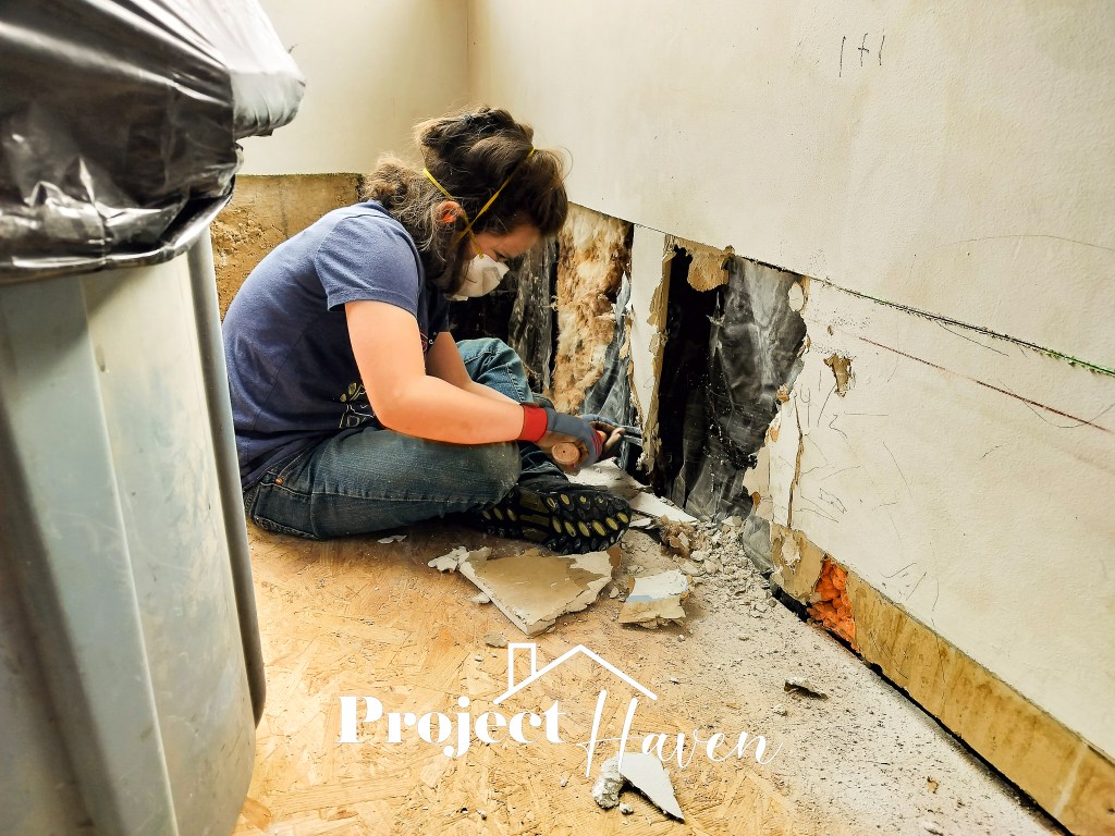 The kids were eager to demolish the strip of drywall. They had to be reminded to not get too crazy!