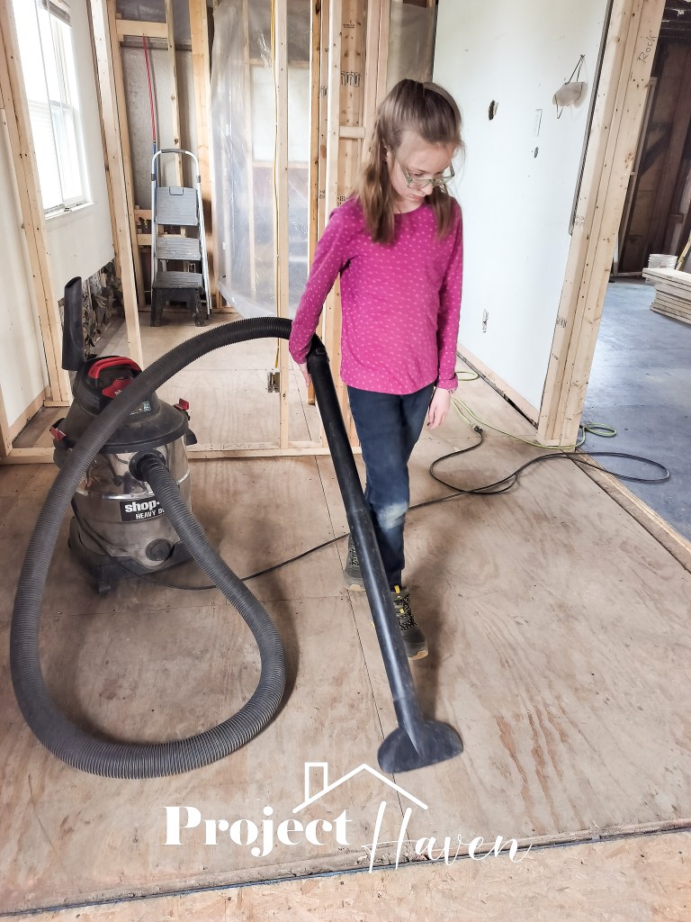 The obligatory vacuuming, of course. Everything is SO dusty. You can even tell the difference in the photo from the area she’s vacuumed and the area she hasn’t yet.