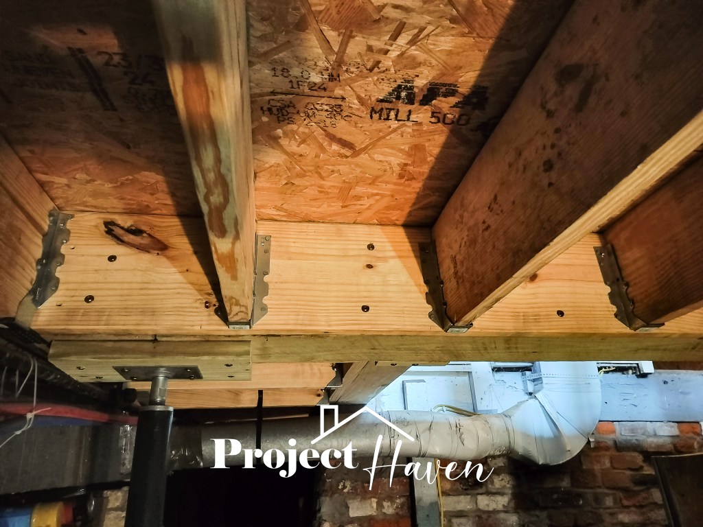 Matt disappeared down the crawlspace/cellar and started spraying termite protectant on all the foundation edges of our wood. It’s a static product that just sits there and kills the termites if they come along and sample it at a future date. Or, as he explained to the kids, “It kills the bacteria living inside their stomachs and then they can’t digest their food anymore.”