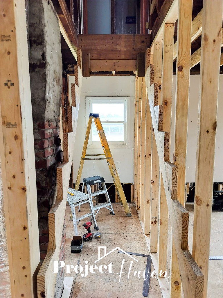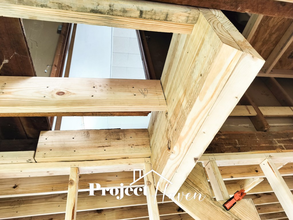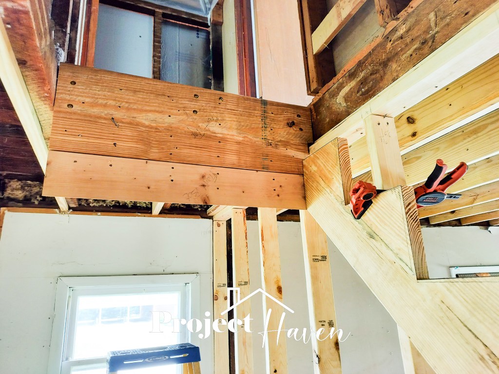 Matt rebuilt the landing at the top of the stairs; it had always felt eerily squishy underfoot–and whaddya know? It was, uh, barely supported. Glad nobody fell through.