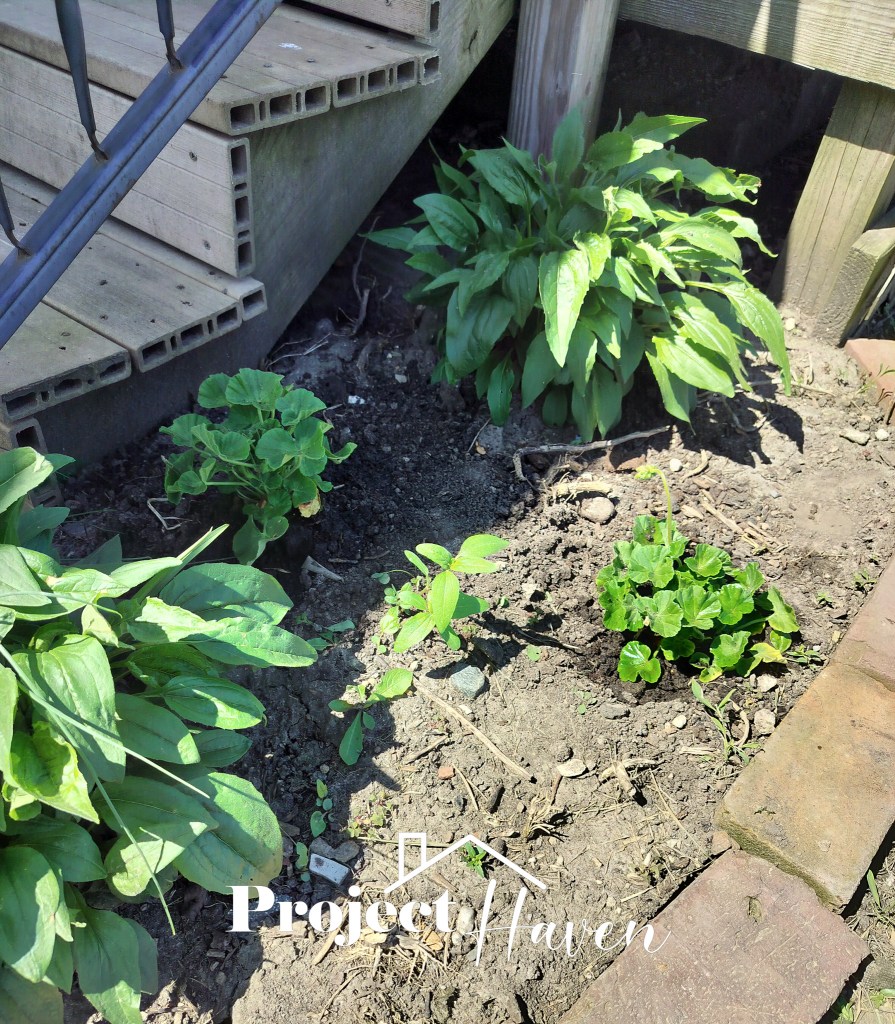 On yet another trip to Menards (seriously, we should buy stock in that place someday) for supplies, we picked up a couple geraniums–heat hardy, perfect for when they might not be watered for a few days at a time. The girls really enjoyed planting them.