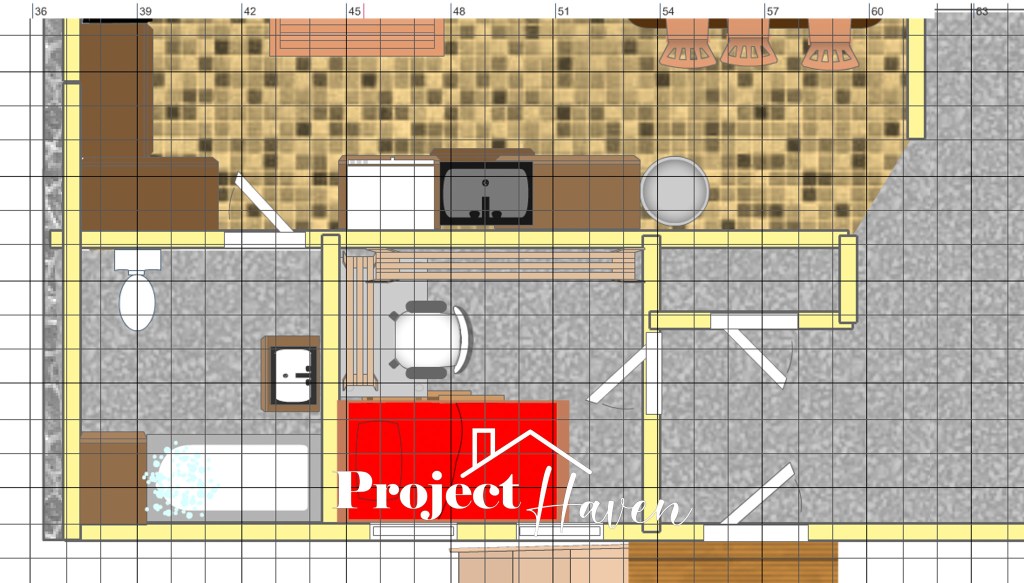 If the bathroom was moved into that northeast corner…And the access to the bathroom was through the kitchen….that left space for what could either be a small bedroom for one of our five kids, or a huge walk-in pantry, or something.