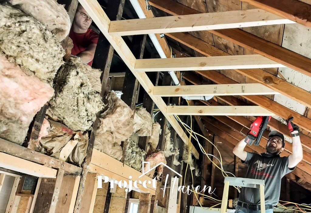 Funny how we both see things the other doesn’t: Matt explained his needs from a construction side (electrical through the attic, plumbing through the walls, insulation for the ceiling, etc.), and I expressed my thoughts from a family, design, and aesthetic viewpoint.