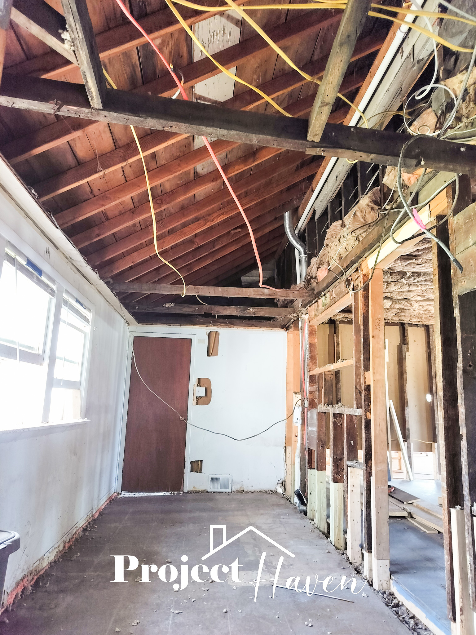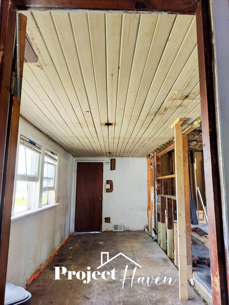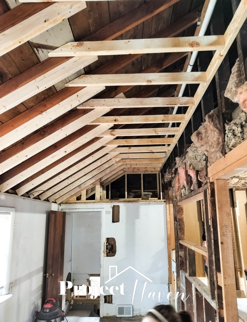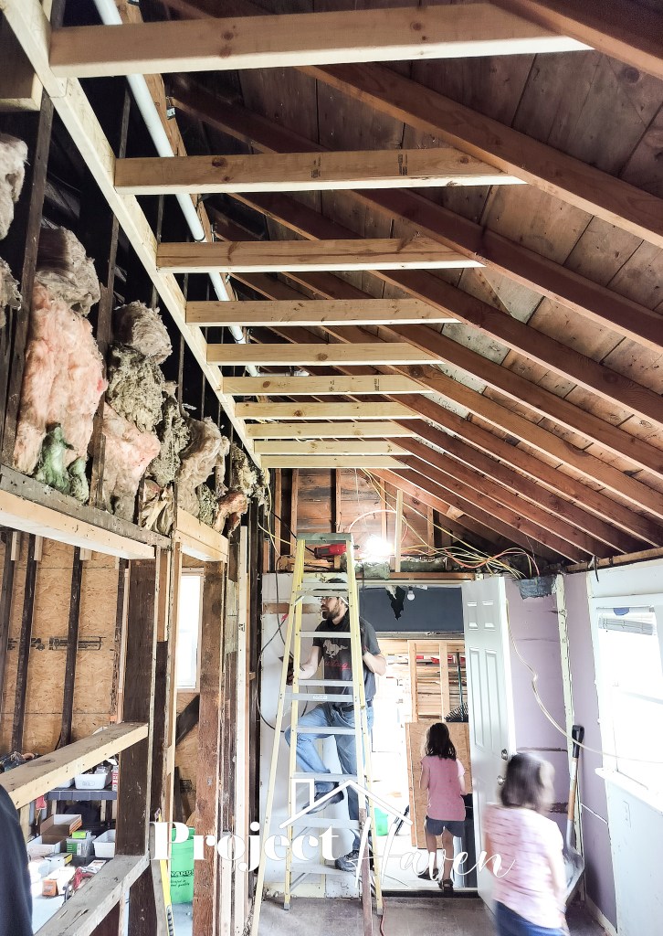 I walked into the mudroom the next house-work-day after they had taken the ceiling down, not even having seen photos of it yet.