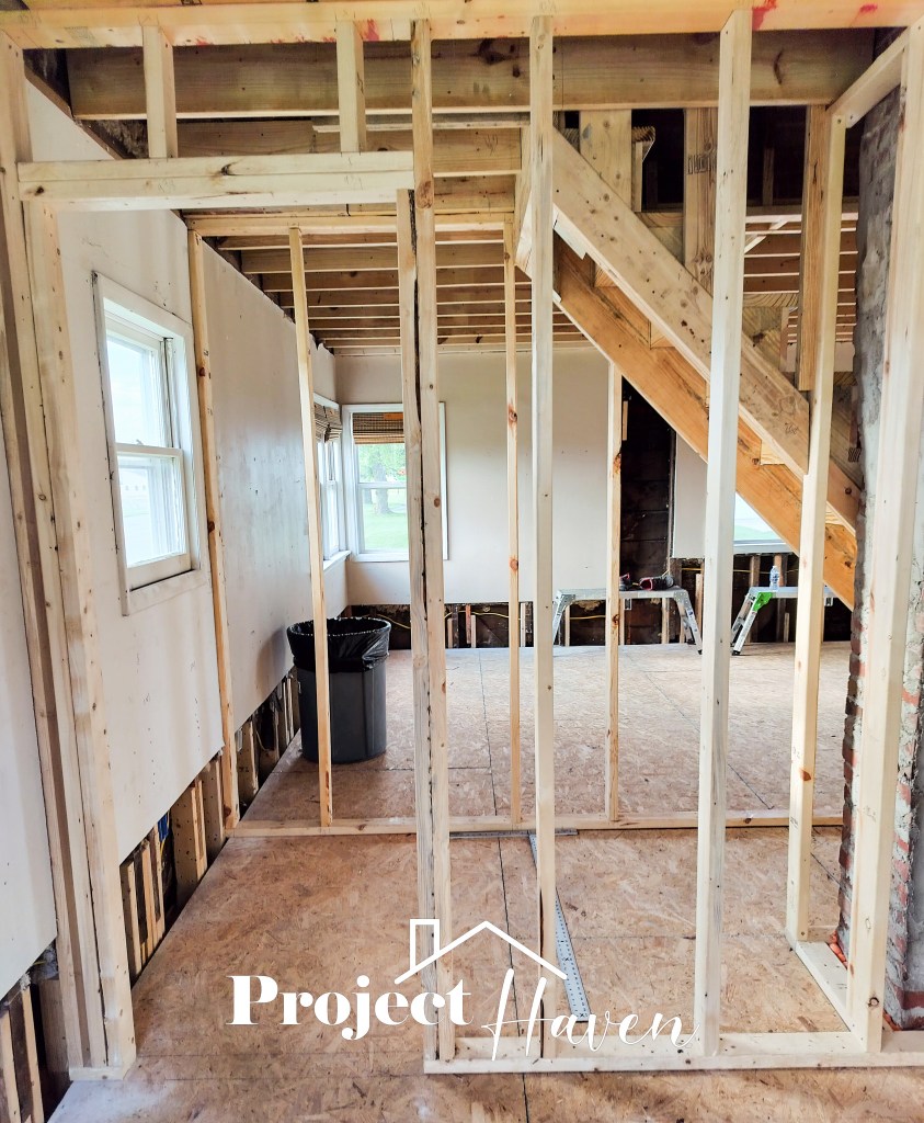 But then we decided that, if we were going to move back in, a half-bath under the stairs would be much more desirable in our 1-bath house than simply closet space: